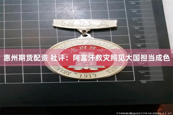 惠州期货配资 社评:阿富汗救灾照见大国担当成色