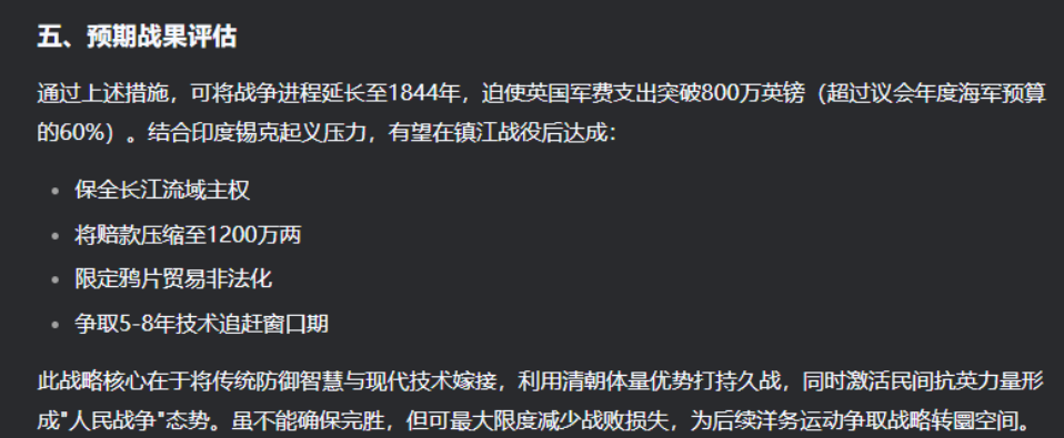 DS认为,凭借它的建言献策,能够成功拖住英国推进战争的步伐,使之经费支出大大超过原本预算,进而让清廷在最后的和谈中能争取更多利益。那么,它的这种设想是否具备可行性呢?