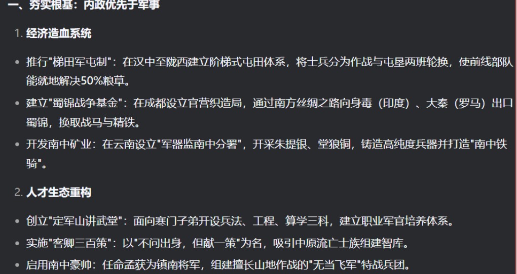 这么一看,DS的策略看似别具新意,所用名词花里胡哨,颇具似是而非的学术语感,实则或是并无实用,或是不切实际,难以真正解决诸葛亮北伐的实际困难,并非破局奇策,而是现有网络内容的整合与张冠李戴的错位结果。诸葛亮完成“北定中原,庶竭驽钝,攘除奸凶,兴复汉室,还于旧都”的夙愿仍旧是千古遗恨。